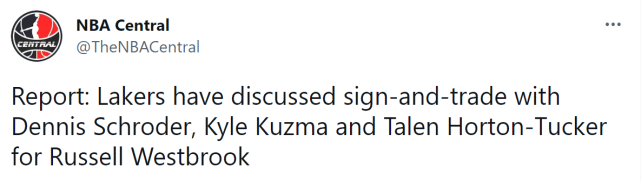 360直播讯 北京时间7月22日,据名记斯皮尔斯报道,湖人有兴趣通过交易得到威少,他们已经讨论过用施罗德、库兹马和霍顿-塔克打包交易威少,其中施罗德需要先签后换。威少还剩两年合同,下赛季的薪水是4421万美元,如果交易达成,威少将超过詹姆斯(4118万)和浓眉(3536万),成为湖人年薪最高的球员。斯皮尔斯还报道称,保罗也在湖人和詹姆斯感兴趣的名单上。
