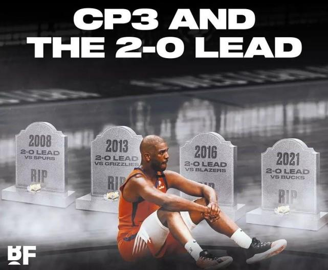 保罗领军的太阳曾经2-0领先雄鹿,但最终遭遇四连败,以2-4的比分与总冠军擦肩而过。保罗也因此创下尴尬的纪录,成为NBA历史上第一位四次在系列赛2-0领先却被翻盘的球员。
