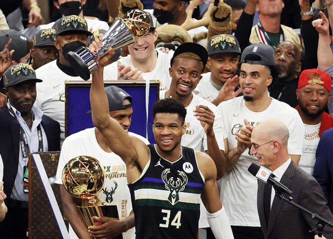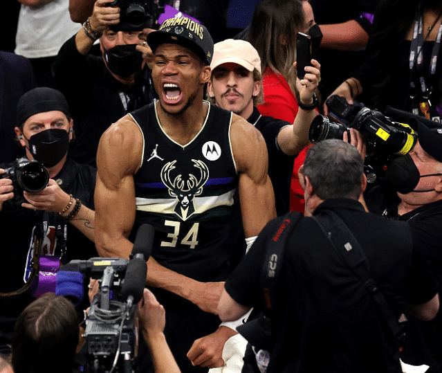 360直播讯 北京时间7月21日,本赛季NBA正式落下帷幕,在总决赛先输掉两场系列赛后,雄鹿队连胜4场,最终以4-2大比分逆转太阳队取得胜利,而字母哥本场比赛25中16,取得50分14篮板5盖帽的超级数据,再加上在前面几场比赛取得的不俗数据,字母哥毫无悬念夺得总决赛MVP,值得一提的是,今年夺冠之后,字母哥也仅仅只有26周岁。