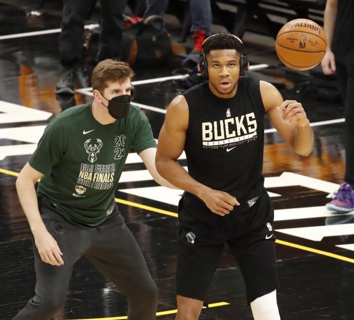 赛前,帕金斯在直播节目中谈到了字母哥并说道:“字母已经多次赢得了常规赛MVP,并曾在同一年同时获得了常规赛MVP与DPOY(2019-20赛季)!就像乔丹与奥拉朱旺曾做到的那样。如果他赢得了今年NBA总冠军并获得了FMVP,我会向他致敬,我会称他为历史排名前十的大前锋,并敲响了历史前五大前锋的大门。”