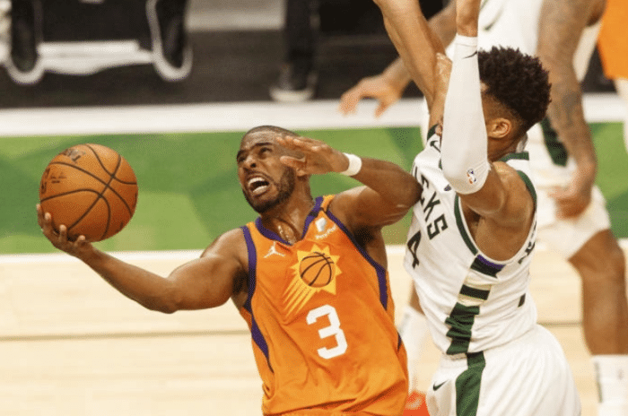 此外,太阳主场的球迷,对于字母哥的干扰可能会较大。在总决赛前两场比赛中,字母哥在太阳球迷倒计时的呐喊中,都出现了三不沾的情况,也一度成为比赛的转折点。回到主场之后,虽然有远征的太阳球迷继续倒计时,但都淹没在铺天盖地的MVP声中。