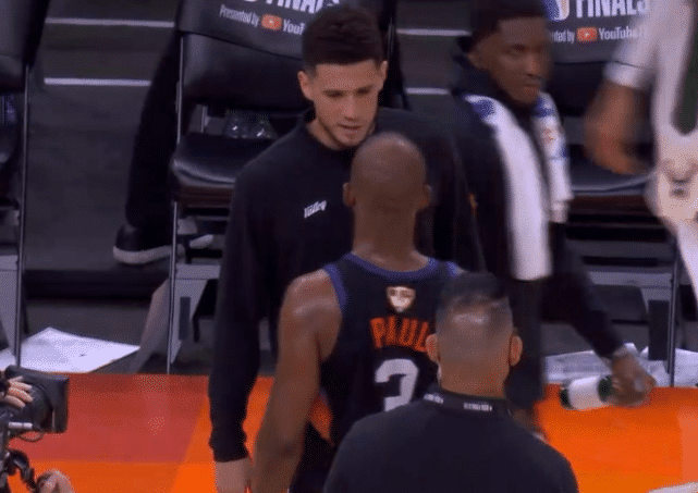脸色铁青的布克,让人想到了在新闻发布会上曾经对保罗竖起中指的哈登,一个42分,一个10分,这和哈登、保罗在火箭队合作时候的数据何其的相像,保罗和布克的爱消失了?