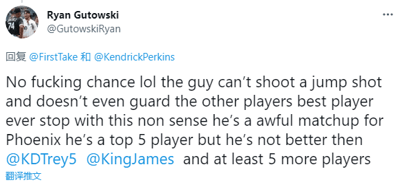 帕金斯如此言论引争议,美球迷怒怼帕金斯:毫无机会,那个家伙不会跳投且不敢防守别队的最好球员,他是联盟前五球员,但他绝对不比杜兰特、詹姆斯更好。