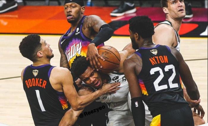 36岁詹姆斯已经四次夺得总冠军且4次加冕FMVP,杜兰特则是两次夺冠且两次夺得FMVP,他俩都是联盟最大牌的超级巨星;当然,字母哥带领雄鹿淘汰篮网并且杀进总决赛,确实不易,不过目前雄鹿1-2落后太阳,总决赛G4成系列赛关键一战,希腊神兽还能力挽狂澜吗?