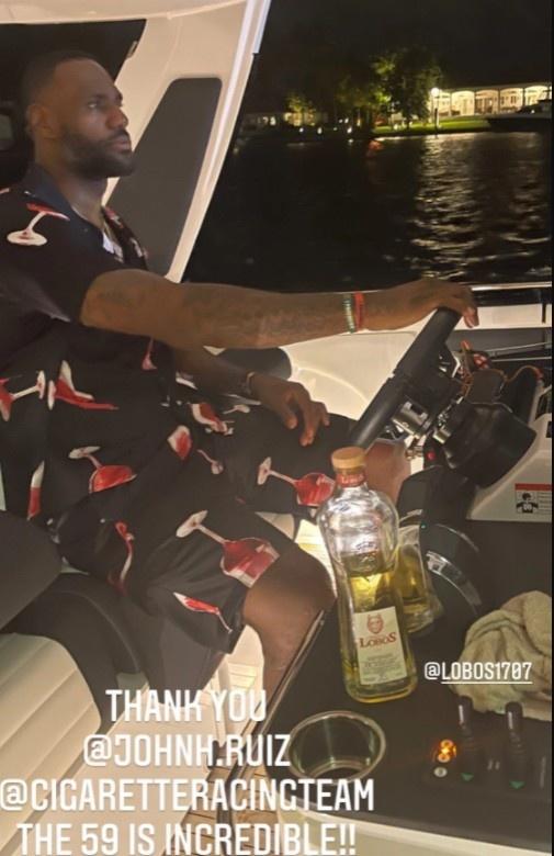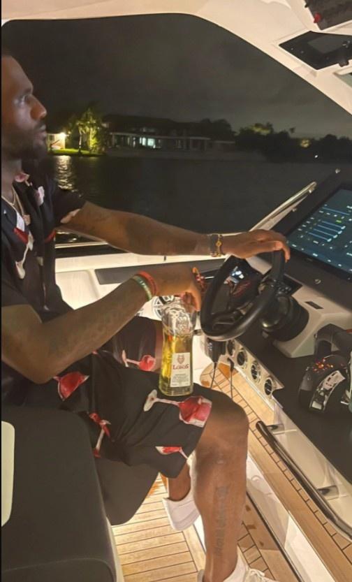 7月15日,詹姆斯晒出了自己在夜间驾驶高级游艇的照片,老詹还喊话了游艇公司的老板,可是这组照片中最抢眼的并不是游艇,而是这个糟老头子身边的酒瓶。