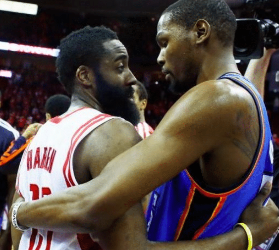 哈登是2009年参加选秀,并被雷霆以第三顺位选中进入NBA的。菜鸟赛季,哈登就展现出惊人的大局观,只要球在他手。哈登就能合理地串联进攻,带领雷霆的第二阵容打出高效比赛。在雷霆的第二个赛季,哈登场均就可以得到12.2分3.4篮板2.3助攻的表现。第三个赛季,哈登便可场均交出16.9分3.8助攻的数据,投篮命中率接近50%,三分命中率也达到了39%。从那一年起,杜兰特、威少、哈登被称为雷霆三少。虽然之后雷霆在总决赛输给了迈阿密三巨头,但雷霆三少未来可期。