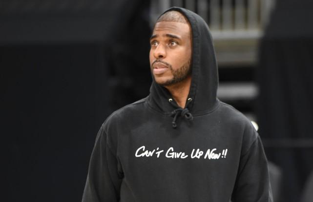 360直播7月14日讯 太阳在雄鹿球馆进行训练,备战总决赛第四场比赛。保罗身穿一件写有“现在不能放弃”的外套,总比分2-1领先的太阳,将力争拿下第四战的胜利。保罗有望在G4冲击5大里程碑,并夺取系列赛的赛点。