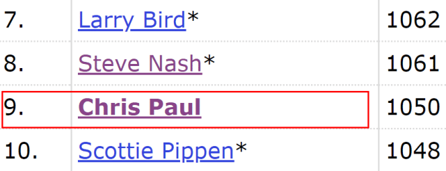 第四,保罗的季后赛两分球进球数已经达到744个,和斯托克顿、“微笑刺客”托马斯并列第48位。本场比赛,他有望超过排名第47位的皮尔斯(746个)和排名第46位的摩西-马龙(749个)。