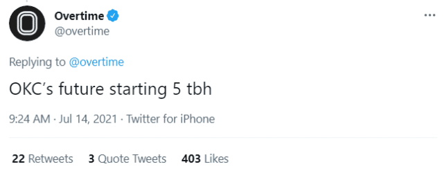 360直播7月14日讯 ,外媒Overtime晒出了一张美国男篮球星的儿子合影,五个萌娃站成一排,还颇有几分霸气。Overtime搞笑配文写道:“雷霆未来的首发五虎。”显然,晒照之余还调侃了一波拥有大量选秀签的雷霆队。