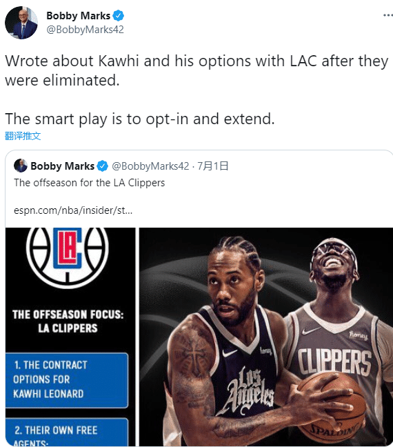 不久前,名嘴斯基普-贝勒斯发推:正如我在小卡受伤第二天所报道的,他季后赛没有复出,因为他需要接受手术;今天他已经做了十字韧带修复手术,如果他没有受伤,快船将会赢得今年的总决赛。