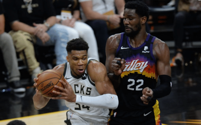 据统计,目前字母哥总决赛命中率达到62.5%。这三场比赛,当艾顿防守字母哥时,后者的命中率仅为44%。而当太阳其他人防守字母哥时,后者的命中率则高达78%,完全被希腊怪兽打爆了。