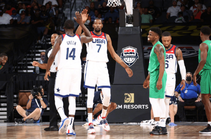 360直播讯 近期,梦之队出师不利,在热身赛中,爆冷输给了尼日利亚队,后者虽然也有多位NBA球员,但实力和美国队相比,还是差了一大截。即便实力悬殊很大,但尼日利亚队还是啃下了这块难咬的骨头。而波波维奇的美国队,则成为笑柄,甚至,外界给领袖杜兰特P上了尼日利亚的球衣,作为笑料调侃。