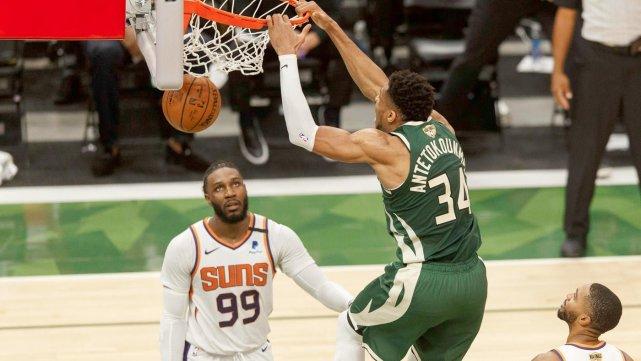 360直播讯 北京时间7月12日,NBA总决赛G3,回到主场的密尔沃基雄鹿找回气势,多次打出得分潮并防死对手,最终以120-100大胜太阳,拿到总决赛的首场胜利。