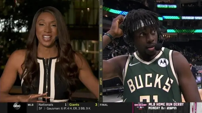 另外本场同样发挥渐入佳境,单节4个三分全场21分5板9助的霍勒迪,在采访时被外面放烟花的声音吓到!主持人说“霍勒迪,我知道,你现在听不到我说话。你们赢下了第三场比赛,现在外面放起了烟花。你得和我们说说,赛前你们0-2落后,你们说了什么来调整心态?”