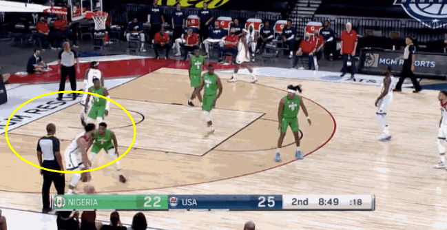 美国男篮的球员单挑技巧确实很强,比如次节比赛8分49秒,塔图姆就在左侧三分位置直接背打对手,另外4名美国球星就在另外一边看着,就是拉开位置给塔图姆单挑对手,尽管塔图姆没有悬念打进一球,展现了自己的单挑技巧,但是对于国际舞台来说,这样的打法无疑是自掘坟墓。