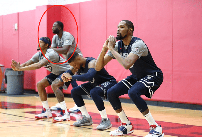 “就让这件疯狂的事情发生吧”!格林对杜兰特招募,让勇士完成了三年两冠的创举。“你来之前我们就是冠军了”!格林对杜兰特的怒吼,也让杜兰特义无反顾地离开了勇士。如今二人又同在国家队训练,二者会在训练中有更多的交流吗?从美国男篮集训队的照片中我们看到,杜兰特和格林一直保持着较远的距离。看来二者之间的恩怨,并没有随着时间的推移而变淡。