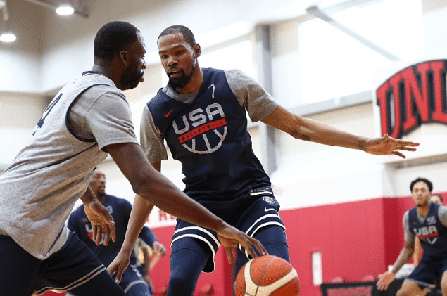 360直播讯 那边的NBA总决赛正在如火如荼地举行,这边的美国男篮也在积极地备战奥运。美国梦之队在世锦赛败北之后,势必会在东京奥运会上找回来。于是,集结了杜兰特、利拉德、塔图姆、追梦格林的美国梦之队便选择了卷土重来。以往在NBA竞争的你死我活的老对手,在这期间也通过相处,变成了彼此熟悉的好朋友。就像当年梦一队的乔丹、伯德、魔术师一样。这次美国队集训杜兰特、格林都有参加,那他们的关系可以通过奥运会变得缓和吗?