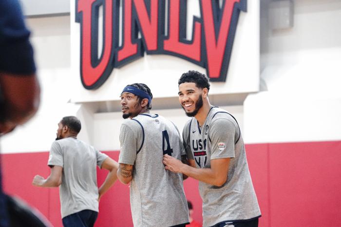 毫无疑问,杜兰特是美国男篮的领袖人物,12人大名单中还有比尔、拉文、利拉德、米德尔顿、格兰特、塔图姆、乐福、霍勒迪、阿德巴约、格林和布克;由于布克、霍勒迪和米德尔顿将正在打总决赛,美国男篮已经选择三名替补人员——马刺队凯尔登-约翰逊、骑士队加兰德和活塞队萨迪克-贝,他们将为美国队参加奥运热身赛。