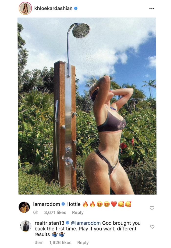 360直播讯 北京时间7月10日,科勒-卡戴珊更新社交媒体,晒出一张身穿比基尼的性感照,湖人旧将奥多姆在评论区留言:辣妹,好性感(Hottie)一系列色色的表情包;对此TT特里斯坦-汤普森回应:上帝拯救了你一次,如果你再为所欲为,这次的结果会不同的。