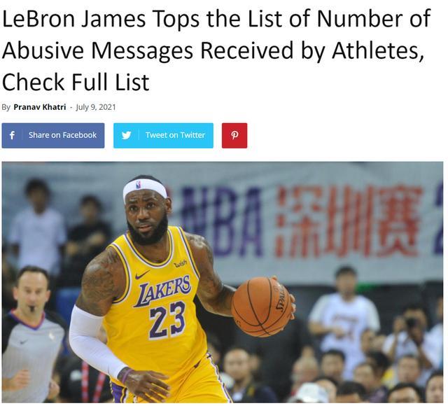 Pickwise表示,詹姆斯在过去一年里在推特上收到122568条辱骂信息,是所有运动员里最多的。而拉什福德则收到32328条辱骂信息,总榜排名第二,足球运动员里最多。
