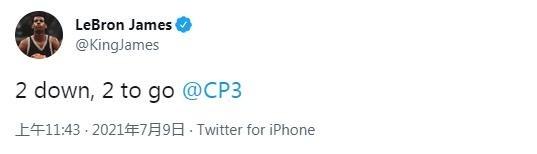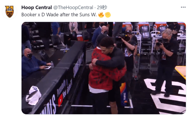 赛后,在场边观战的NBA名宿韦德,对后备布克进行了鼓励,他第一时间上前拥抱小老弟,美媒也是将这一幕截图刷屏,两位得分后卫的举动十分暖心。此外,保罗的好友勒布朗-詹姆斯再次更推祝贺:“拿下2场了,还差2胜@保罗。”在太阳拿下首场总决赛胜利时,詹姆斯就曾发推祝贺保罗。