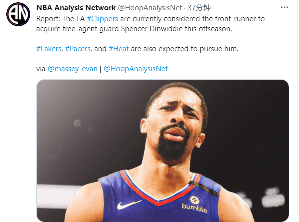 据美媒NBA Analysis Network报道,洛杉矶快船领跑丁威迪争夺战,湖人、步行者和热火也在追求他;按照丁威迪的态度,他想要一份平均年薪2000万美元的新合同,虽然快船老板不差钱,但由于薪资空间有限,快船只有通过先签后换的方式才能引援丁威迪,湖人也是如此。
