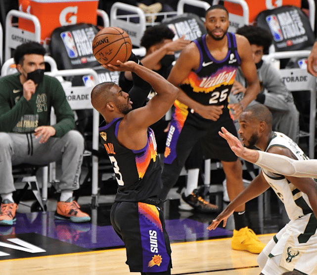 360直播讯北京时间7月7日,NBA总决赛首战大幕落下,保罗贡献32分9次助攻,率领太阳打出一波流擒鹿,最终取得了大比分1比0的优势。这场比赛的大部分时间,布登霍尔泽都是采取挡拆换防的策略,保罗也用自己稳定的中投狠狠的惩罚了这样的防守方式。