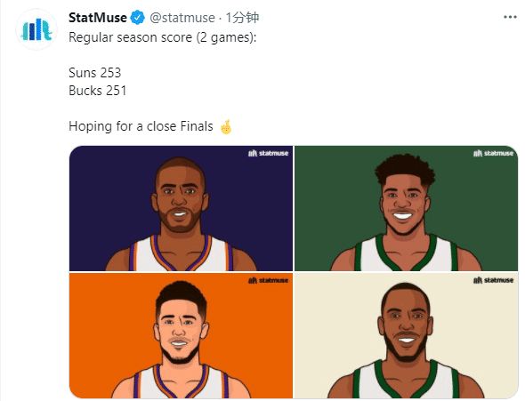 今年常规赛,雄鹿两次对战太阳全都输了,不过每一场都是打到最后时刻才分出胜负,太阳两战253-251仅赢雄鹿2分;总决赛将在明天正式开打,你看好哪一支球队最终能夺得总冠军呢?