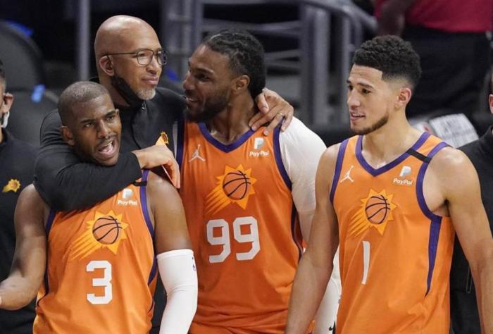 当然,比赛是一场一场打出来的,最终比赛结束之前,任何分析都可以说是纸上谈兵。本赛季开始前,恐怕也不会有人认为太阳能以西部第2的成绩打进季后赛。更没有人会料想到太阳在季后赛能连续战胜湖人,掘金以及快船闯进西部决赛。