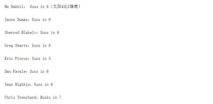 所以,最终不论太阳或者雄鹿夺冠,其实都不足以令人感到意外。但是支持太阳的专家多达7人,而支持雄鹿的专家仅有1人,还是多多少少有些令人吃惊。不知道大家怎么想,反正我是这样认为的。