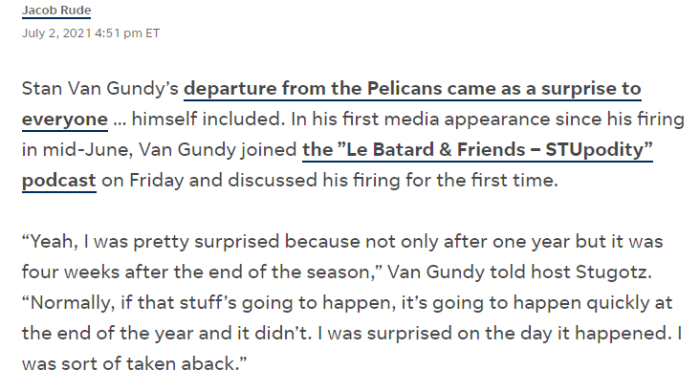 360直播讯 大范甘迪执教鹈鹕一个赛季就被炒鱿鱼,对于大范来说确实是一个羞愧难当之事,去年还被鹈鹕高级别接待,一个赛季之后鹈鹕没有打出优秀战绩,就这样被炒鱿鱼,鹈鹕还说是共同决定,但大范或许不满被鹈鹕炒鱿鱼,他应该还是渴望继续留队执教,所以在《STUpodity》节目上谈到自己被炒鱿鱼的原因,大范表示并非共同决定,关键原因是他与鹈鹕总裁格里芬出现巨大分歧,导致了大范被迫离开鹈鹕。