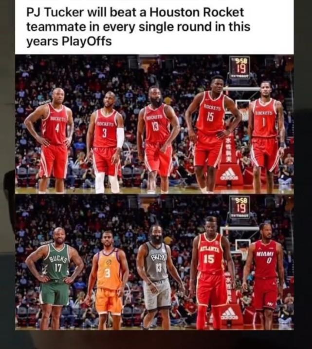 这些被淘汰的队员,不只是塔克的前队友,更准确地说是塔克的火箭前队友。另一家美媒也晒出了类似的话题,并写道:“塔克在今年的季后赛上每一轮都要打败一位昔日的火箭队友。”