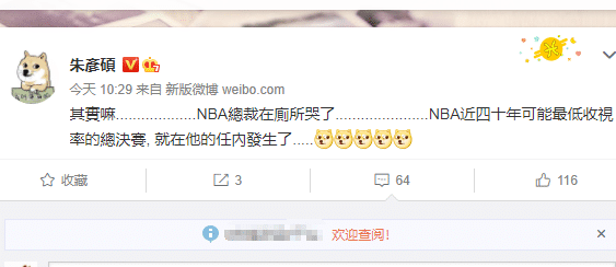 总决赛雄鹿大战太阳,字母哥左膝过度伸展伤情扑朔迷离,米德尔顿和霍乐迪带队迎战保罗、布克和艾顿,名嘴朱彦硕调侃称:“其实嘛...................NBA总裁在厕所哭了......................NBA近四十年可能最低收视率的总决赛, 就在他的任内发生了..”