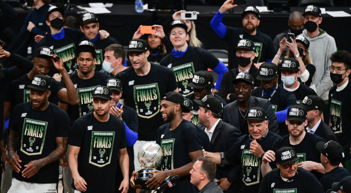 360直播讯 今天NBA总决赛的两支球队出炉,在字母哥受伤的情况下,米德尔顿带领雄鹿时隔47年杀入总决赛,太阳则是提前淘汰快船晋级到最终的决战舞台。这两支球队都并非是联盟的传统球队,太阳从未拿到过总冠军,而雄鹿队史上也只有1次总冠军的经历,还是在整整50年前,所以不论双方谁夺冠,都将是本世纪NBA联盟的新王加冕。同时球员层面,克劳德是本赛季总决赛两队阵容中唯一打过总决赛的球员,所以两队总决赛经验都不丰富,这也给系列赛增加了很多悬念。