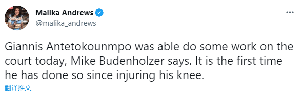 22岁特雷-杨提前带伤复出,但雄鹿连续字母哥仍旧缺席,因伤无缘东决G6;不过布登霍尔泽透露字母哥的最新情况,已经开始在球场上完成一些康复训练,这是他伤后首次在场上做一些训练。
