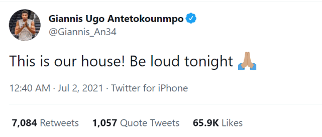 字母哥的缺阵,应该在所有人的意料之中,一天前,雄鹿公布字母哥的核磁检查结果时,就表示他的状态是小概率出场,现在看来,字母哥确实不具备上场打球的可能。医学专家曾指出,字母哥这样的伤病,至少需要7-14天的恢复期。赛前,字母哥更新社媒,鼓舞雄鹿球迷:“这是我们的主场!今晚大家躁起来吧!”