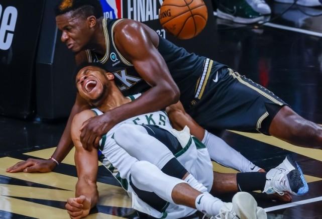字母哥的这次受伤,发生在东决G4的第三节中段。当时,字母哥试图封盖卡佩拉的空接扣篮,但他在落地时,左膝明显反向弯曲,随后,他痛苦倒地,在队友搀扶下离场。