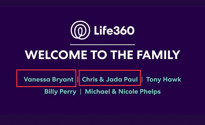360直播讯 今日科比遗孀瓦妮莎在社交媒体上宣布了自己投资项目,是很著名的软件life 360,值得一提的是投资这款软件致力于家庭成员的定位,投资的人中有我们很熟悉的,已经打进总决赛的太阳核心克里斯-保罗,还有科比的合伙人Jeff Stible。