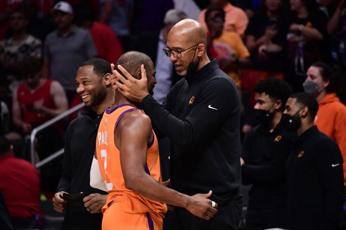 保罗在第三节突然发力,中投6中6打得约基奇输急眼,明显心态崩了,一巴掌打到佩恩的面部,吃到二级恶犯被驱逐离场,离场前约基奇主动向佩恩道歉;赛后约基奇在球员通道与保罗拥抱,并且恭喜保罗。
