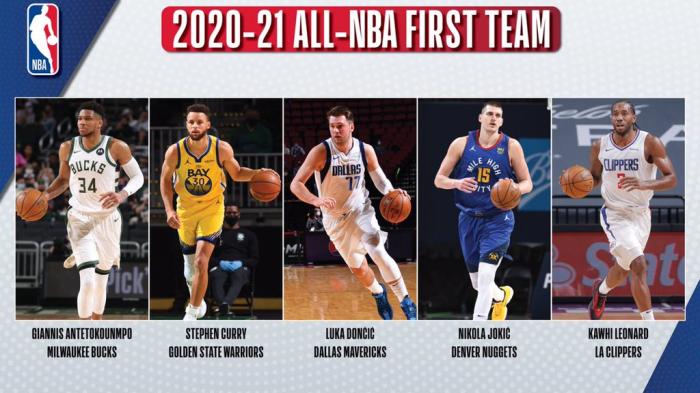 最佳一阵:库里、约基奇、小卡、字母哥和东契奇