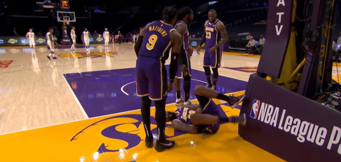 第二节开场没多久,大莫里斯在防守中惨遭锡安铁肘,大莫里斯被肘击到腹部,随后只见大莫痛苦倒地不起,抱着肚子十分痛苦,詹姆斯、马修斯和哈雷尔都过来,所幸大莫里斯也无大碍,暂停回来大莫继留在场上;锡安铁肘险些打伤湖人两大悍将,尤其是第二次,锡安铁肘开路太狠,大莫捂着肚子太痛苦。