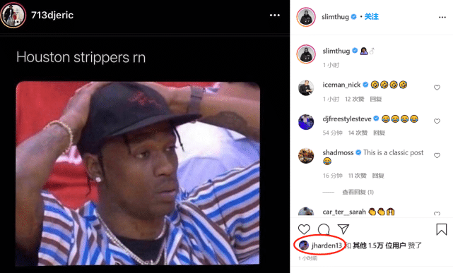 在哈登被交易至篮网后,有网友发布动态称:“休斯顿的脱衣舞娘要失去她们的金主爸爸了”,这条调侃的评论获得了多人的转发点赞,还包括哈登本人。当然,这也是在交易发生后,媒体们第一次在网络上发现哈登的动态。