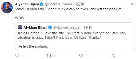 哈登说完这番话后结束采访,直接离开采访现场,名记表示这就像是哈登离开火箭的最后宣言似的。