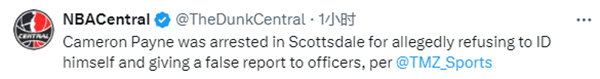 360直播讯 北京时间6月15日,据美媒TMZ报道,当地时间周五早上,76人后卫卡梅隆-佩恩在亚利桑那州被捕,警方声称他向执法人员提供了虚假报告。