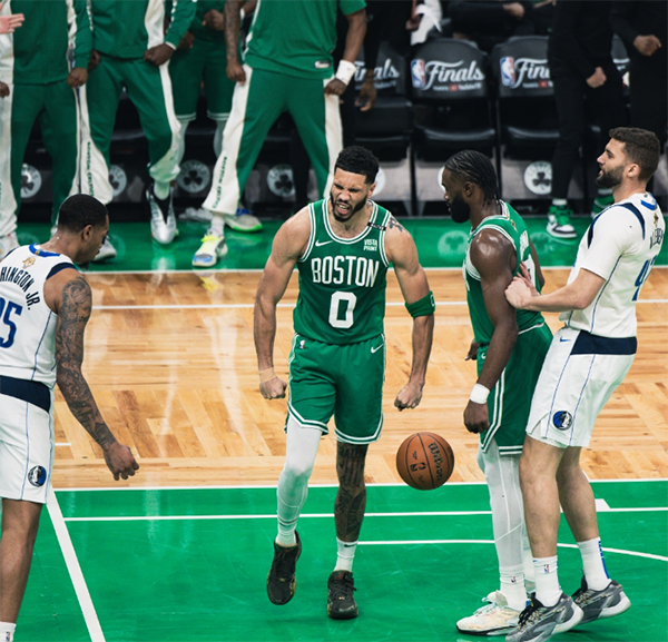 总决赛G5正式开打,霍乐迪空切杀到禁区率先得分,东契奇三分打铁、防守被布朗造犯规以及运球被怀特抢断,东欧三分继续打铁,塔图姆再次助攻霍乐迪上篮;东契奇助攻小琼斯暴扣,霍乐迪强硬突破得分,霍福德追身三分,绿军9-2开场打停比赛。