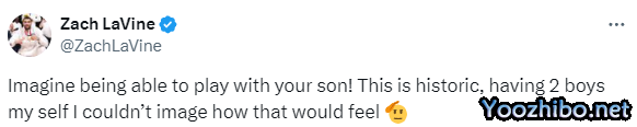 公牛球星拉文更推道:想象一下能够和你的儿子一起玩有多棒。这是历史性的,我自己有两个男孩,我无法想象那会是什么感觉(致敬)。