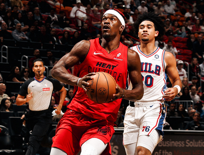 360直播讯北京时间11月19日,NBA常规赛热火主场106-89逆转大胜并且送76人4连败,巴特勒伤停4场后正式复出,回归首战12中8、罚球13中13轰下30分10篮板5助攻,正负值+29,末节关键时刻连得6分杀死比赛,恩比德提前认输;巴特勒打出赛季最强一战,得分和篮板都创赛季新高。