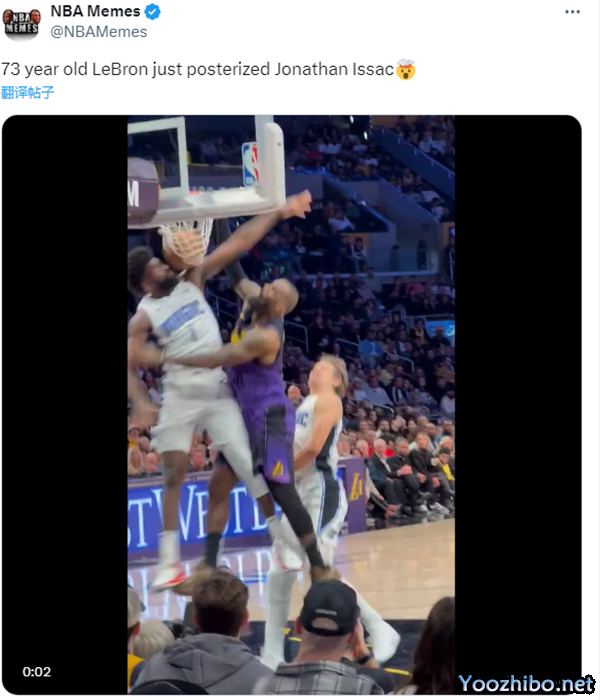 360直播讯北京时间11月22日,NBA常规赛湖人主场对阵魔术,第二节詹姆斯霸气单臂隔扣艾萨克引热议,老詹怒瞪对手,湖人主场瞬间沸腾。