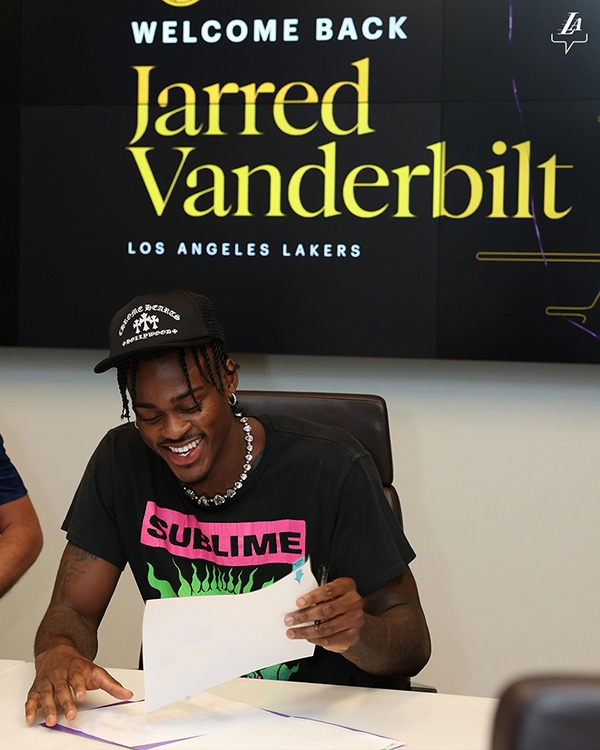 范德比尔特不仅转发签约动态,而且录视频向湖人球迷问好,他表示:湖人国度,你们好吗?我是范德比尔特,很兴奋能够回来。兄弟们,很兴奋能够在这里再专注几年。所以,让我们冲吧。