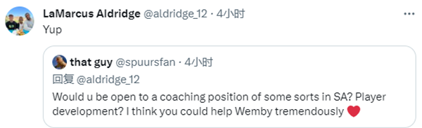 马刺球迷在社媒上问阿德:你是否对进入马刺教练组担任某个职位持开放态度?球员发展教练?我觉得你可以帮到维克托-文班亚马。